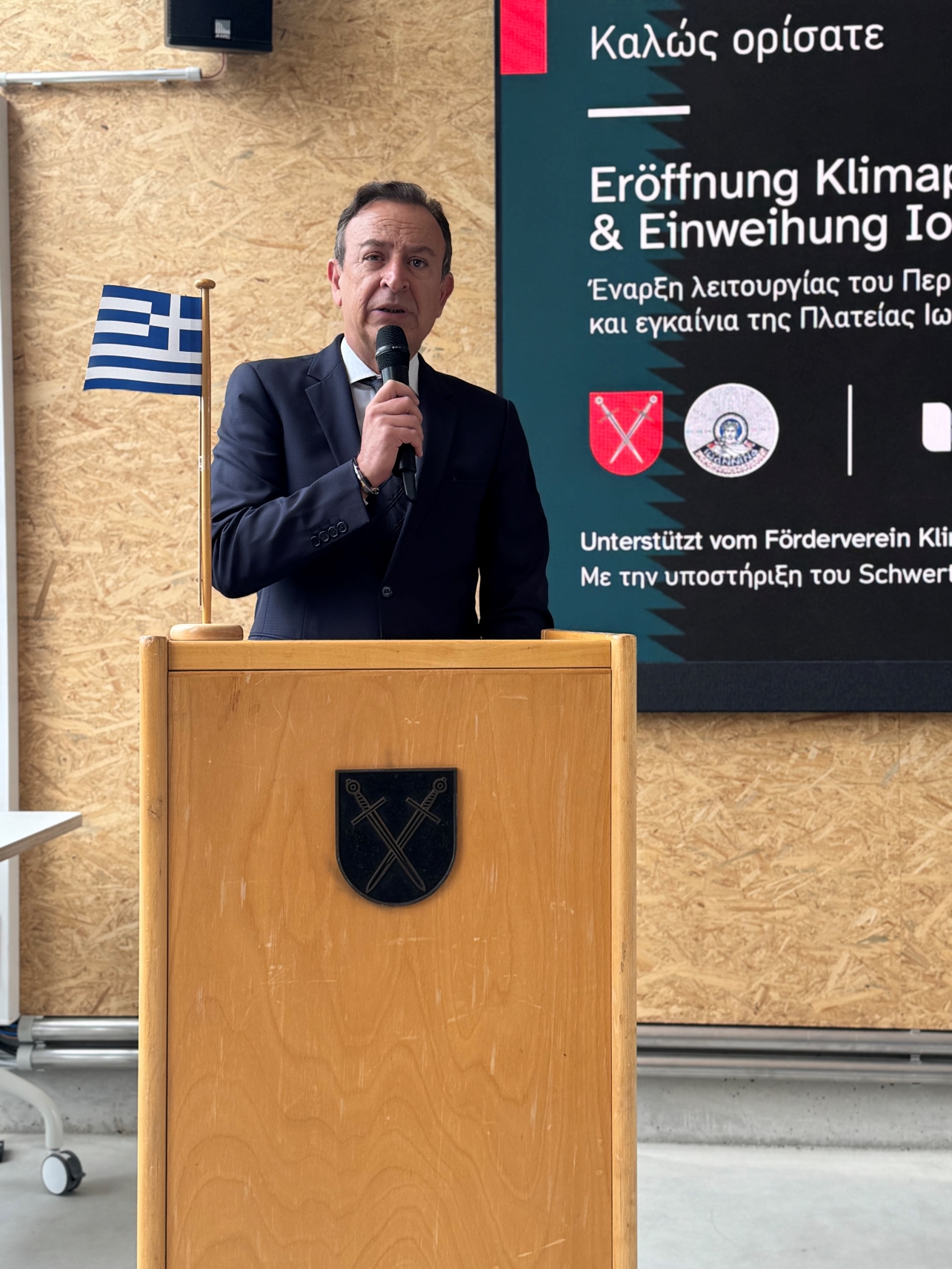 Κατά την ομιλία του στην τελετή, ο κ. Μπέγκας εξέφρασε τη βαθιά συγκίνηση και ευγνωμοσύνη του προς τον Δήμο Σβέρτε για την πρωτοβουλία, τονίζοντας ότι η ονοματοδοσία της πλατείας αποτελεί «πράξη υψηλού συμβολισμού, αφήνοντας ανεξίτηλο το αποτύπωμα των Ιωαννίνων στη Γερμανία, στην καρδιά της Ευρώπης».
